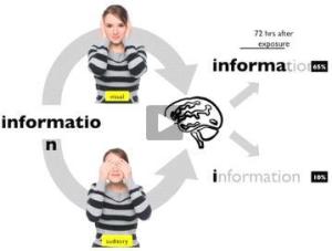 50 Prozent unserer Gehirnleistung ist nur mit der Verarbeitung der Eindrücke der Augen beschäftigt. Das deutet an, wie wichtig Visualisierung ist. Untersuchungen haben gezeigt, dass sich 65 % der Informationen, die durch Bilder vermittelt werden, 72 Stunden danach noch präsent sind, 10 % sind das nur bei textlichen und gehörten Informationen. Sehr schön dazu ein Vortrag von Alex Lundy (danke #Andrian).